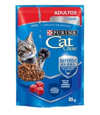 Gatos adultos necessitam de aproximadamente 3 sachês de 85g para cada 4kg de peso corporal por dia, divididos em duas ou mais refeições. Quando oferecido com alimento seco, cada sachê de CAT CHOW Adultos Carne corresponde a aproximadamente 25g (1/4 de xícara de 200ml) de CAT CHOW seco. Ajuste a quantidade para manter a condição corporal ideal de seu gato.
